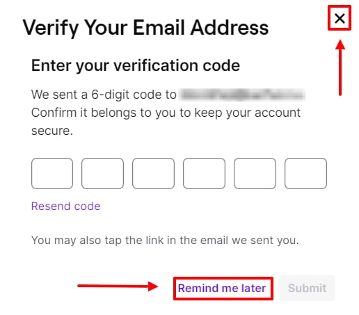 - If twitch asks you for a code from the mail then press "remind later", "cross" or F5 on your keyboard.